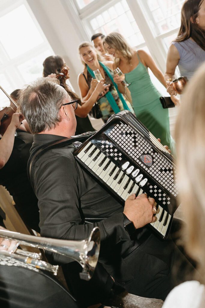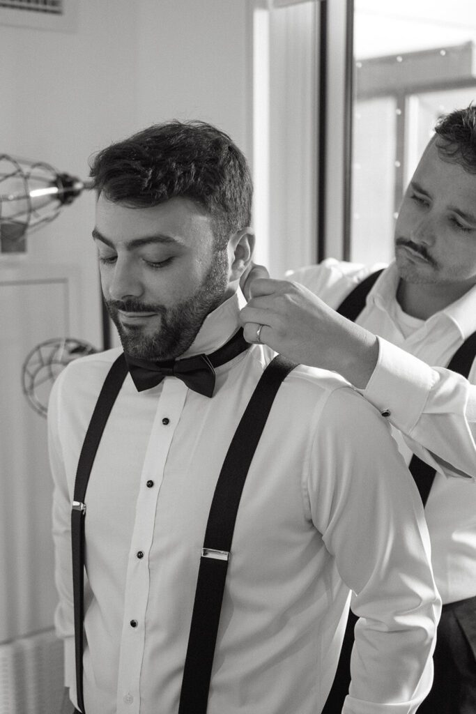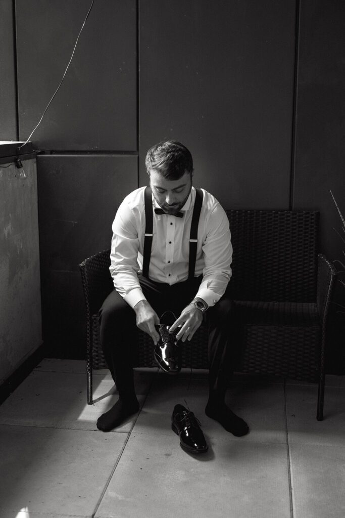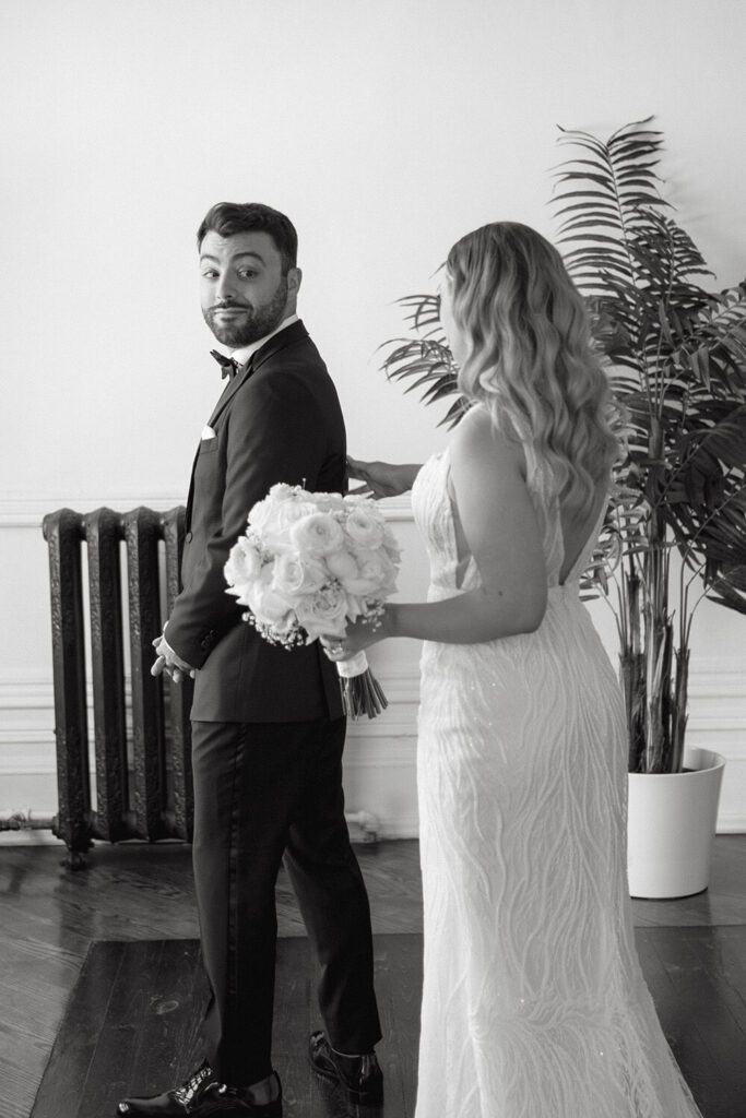 Tamara got ready at a modern Airbnb with her bridesmaids, who wore soft green dresses that tied in beautifully with the overall palette. Meanwhile, Joe and his groomsmen got ready at the couple’s Queen West condo, keeping things relaxed and fun. These quiet, intimate moments before the day kicked off set the tone for everything that followed and are some of our favourites to plan for with full-service clients.