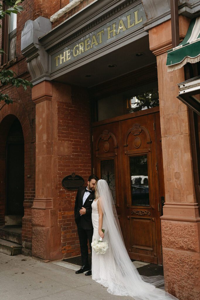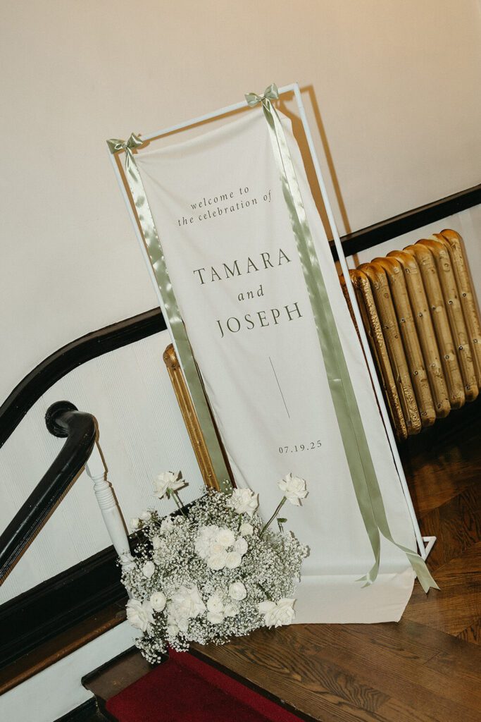 Before heading to the church, Tamara and Joe shared a private first look at The Great Hall, their reception venue. It was a quiet and emotional moment that gave them time together before the events of the day began and allowed us to capture portraits in the space before guests arrived. As full-service planners, we love building in intentional, meaningful moments like this to keep the day flowing naturally.