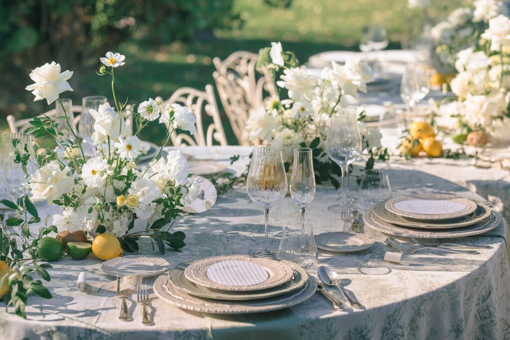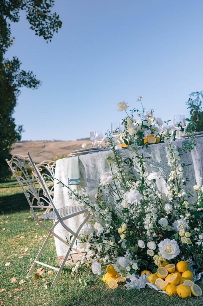 We leaned into details that feel undeniably Italian, including warm yellow tones and fresh lemons incorporated throughout the tablescape.